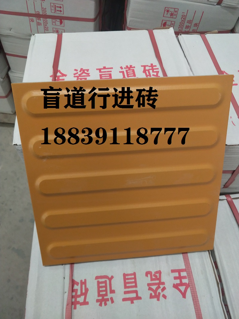 盲道磚顏色:橘色盲道磚,桔色盲道磚,深灰盲道磚,中黃盲道磚,乳白盲道磚(定制),綠色盲道磚(定制),材質(zhì)為瓷磚質(zhì)。