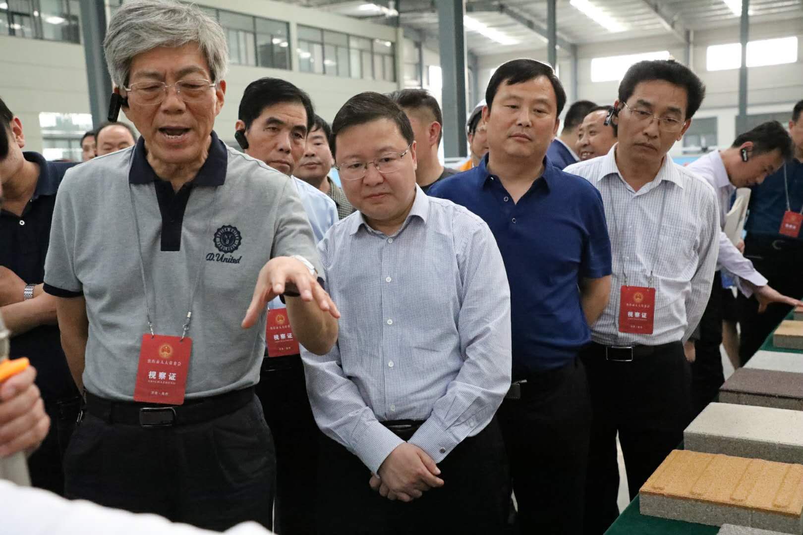 隨著海綿城市的加速推進,陶瓷透水磚作為新型海綿城市建設(shè)的主力軍成為了熱銷產(chǎn)品。昨日,焦作市人大調(diào)研團隊蒞臨我司檢查指導(dǎo)工作,市領(lǐng)導(dǎo)在陶瓷透水磚的生產(chǎn)線前駐足聆聽講解,并對我司的工作給予了充分肯定。