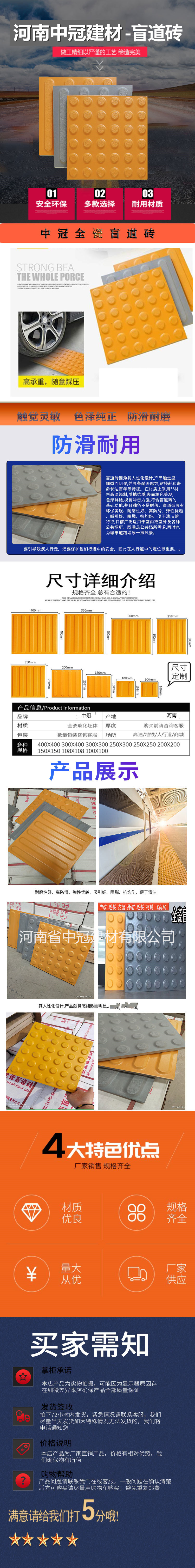 我們的盲道磚是全瓷的,不是塑膠的,也不是水泥,而且尺寸是經(jīng)過修邊的,不要害怕有誤差,厚度也達標的,顏色是不會掉色脫色的,還有什么不放心的就電話咨詢吧!18239167111\1883911877