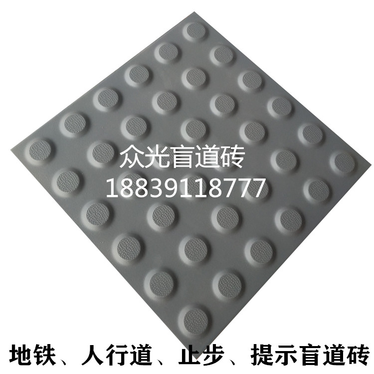 盲道磚是為盲人安全提供的行路方便道路設(shè)施。盲道磚由三類磚鋪設(shè),一類是條形方向引路磚,引導(dǎo)盲人放心前行,稱為行進(jìn)盲道磚,或盲道方向引路磚;一類是帶有圓點(diǎn)的提示磚,提示盲人前面有障礙,該轉(zhuǎn)彎了,稱為提示盲道磚,或盲道方位引路磚;還有一類是盲道危險(xiǎn)警告引路磚,圓點(diǎn)較大的,是警視前面危險(xiǎn)。