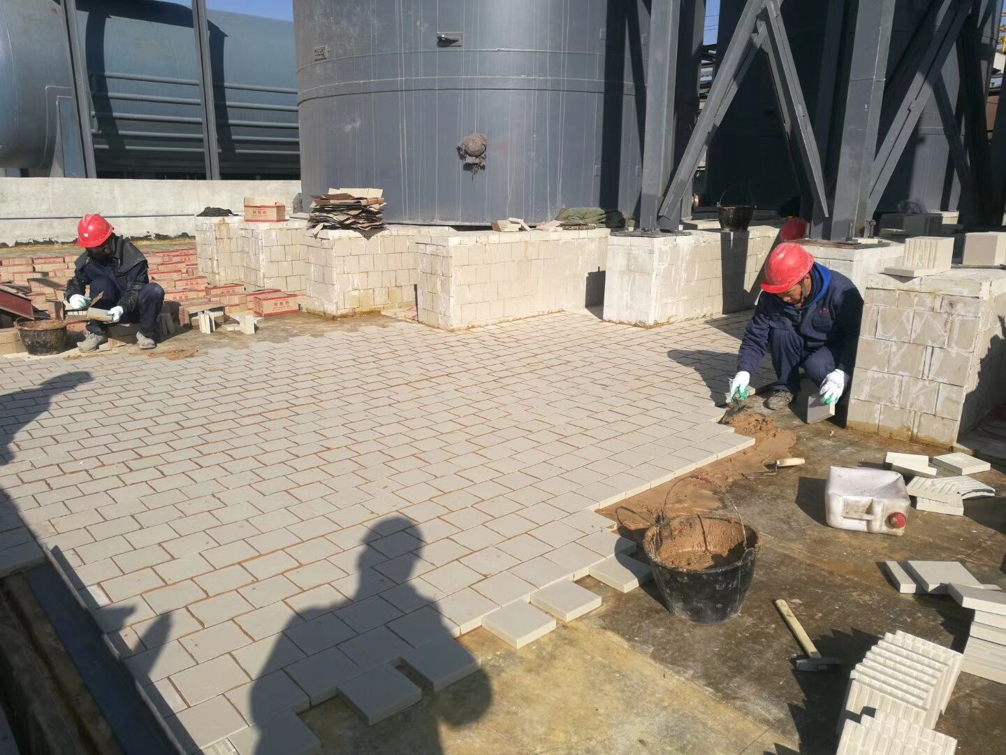使用說明: 一般環(huán)氧樹脂,耐酸膠泥、耐酸水泥鋪貼,鋪貼時可根據(jù)上述生產(chǎn)廠家產(chǎn)品使用說明書進(jìn)行施工; 用草酸清洗混凝土表面,達(dá)到酸堿中和; 工業(yè)瓷耐酸磚,間縫寬度約8—10mm,間縫深度與磚厚相平為宜,以防泄露; 鋪貼完畢后應(yīng)用槽酸沖刷表面,以助于更加牢固。